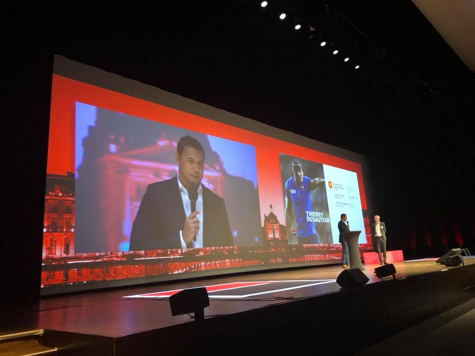 Belle rencontre de Thierry Dusautoir – Meilleur joueur rugby du monde avec notre fondateur Philbert Corbrejaud lors de sa conférence “dénichez l’aigle qui est en vous !” Pendant la convention Société Générale avec 300 directeurs d’agences au palais congrès Bordeaux le 30 mars 2018 … Grand succès avec ces 2 parcours inspirants.